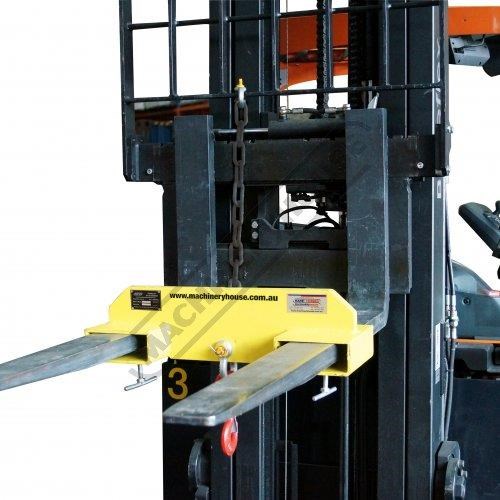 The FLA-2T capacity is rated at WLL 2 Tonne (2000kg) when position & secured on the tine's and placed 600mm from the mast & safety chain also secured.