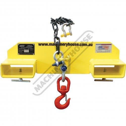 FLA-2T Forklift attachment effectively transforms a forklift into a mobile crane, handling awkward loads which cannot be safely handled by a conventional forklift with great efficiency. It has excellent strength: weight ratios. The Forklift attachment is supplied complete with safety hook, shackle and safety chain.
