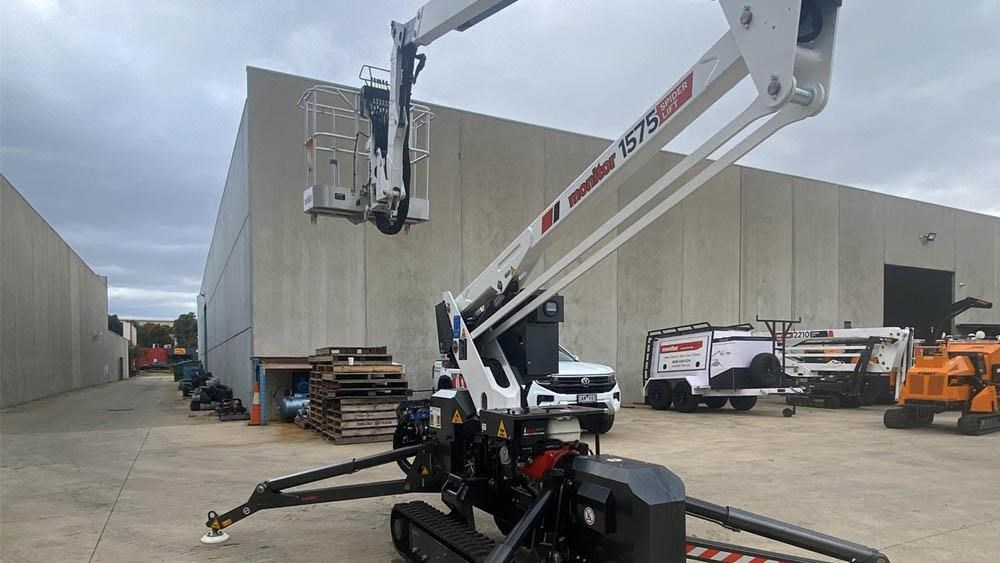 The Monitor 1575 Spider Lift is an extremely compact spider lift for the most difficult applications. The track system expands out for extra stability and stands taller for extra ground clearance. When retracted, it reduces to only 780 mm wide and lowers the machine to 1909 mm height for very narrow access.