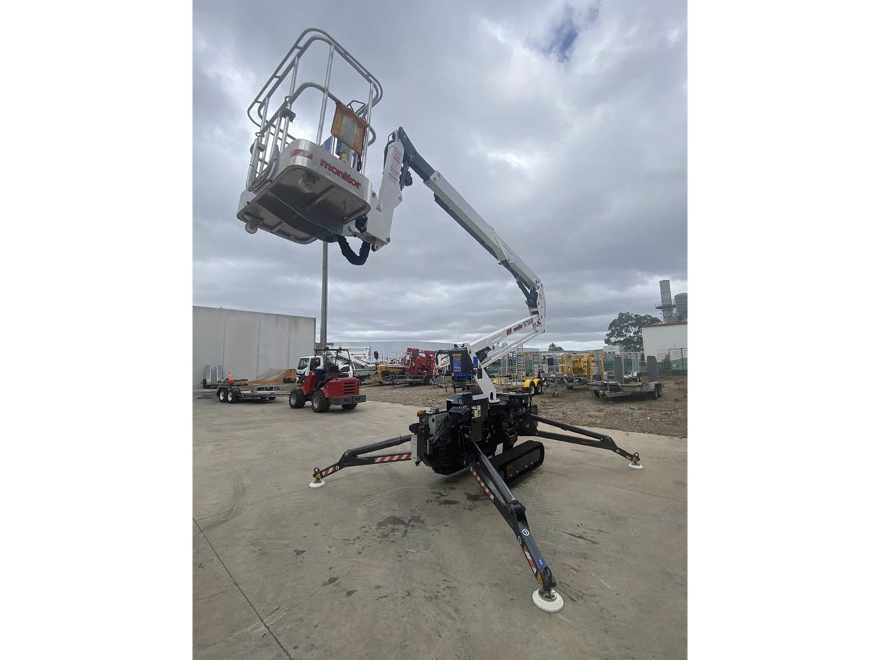 Uniquely, the dog-leg shaped stabilizers provide a huge amount of travel for setting up on very uneven terrain. The Monitor 1575 PRO is also equipped with a 14 hp water-cooled twin cylinder Kubota diesel or petrol engine, auto-levelling, platform rotation, ed drive, and remote radio control and stabilization.